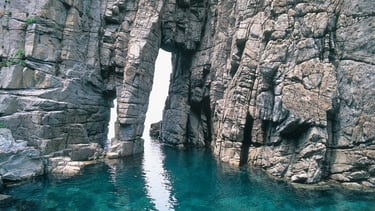 The scenic spot of Sotomo is a huge cave with a total length of about 60 meters. It is a scenic spot in Obama City, Fukui Prefecture, Japan, and a beautiful coastline that is part of Wakasa Bay Quasi-National Park. Characterized by cliffs and caves formed by marine erosion, it has been selected as one of the "100 Best Beaches in Japan" and is known as a tourist spot where you can enjoy natural beauty. It is said that the name "Sotomon" was taken from the legendary cave "Suzhou Cave" in China.