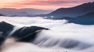 Shioritoge is a mountainous area located on the border between Niigata and Fukushima prefectures, and is famous for the natural phenomenon known as waterfall clouds, which can be seen especially from autumn to winter. Waterfall clouds are a type of cloud that form under certain conditions. When the water vapor from the river flowing along the valley comes into contact with the cold air, mist-like clouds are formed, and they look like they are cascading down like a waterfall, hence the name "waterfall clouds."
