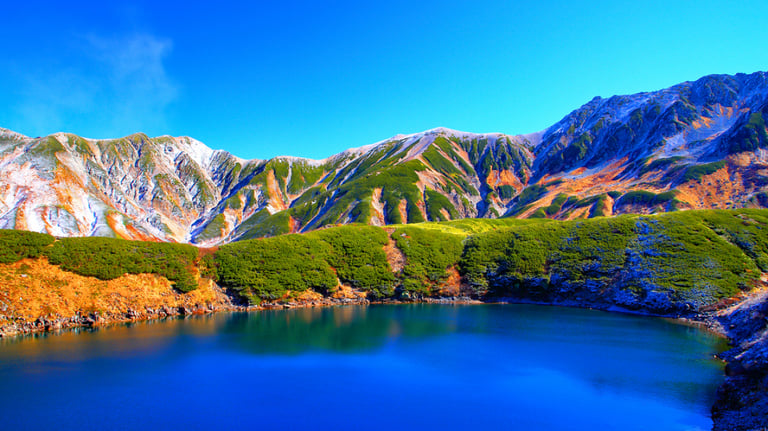 Mikurigaike is a volcanic lake located at an altitude of about 2,405 meters in Tateyama Town, Nakaniikawa District, Toyama Prefecture, and is an iconic spot on the "Tateyama Kurobe Alpine Route." Known as the highest lake in Japan, it is surrounded by the majestic Northern Alps mountains and offers beautiful scenery throughout the seasons.