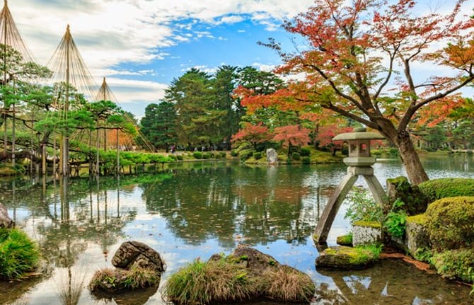 Kenrokuen Garden, located in Kanazawa City, Ishikawa Prefecture, is one of the three most famous gardens in Japan. The garden was created by the Maeda family of the Kaga domain in the Edo period (1603-1868) and has a history spanning some 300 years. Because of its beauty and historical value, it is a popular spot for tourists from Japan and abroad.