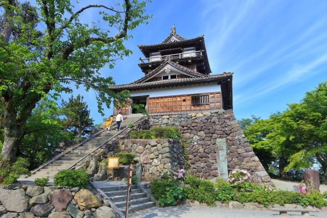 Maruoka Castle is a historical castle located in Sakai City, Fukui Prefecture, Japan, and is known as one of the few castles in Japan with an existing castle tower. It is one of the 12 existing castle towers in Japan, and has a particularly valuable architectural style as a "watchtower-type castle tower. Also known as Kasumiga-jo, it attracts many tourists with its beautiful appearance that harmonizes with the scenery of each of the four seasons.