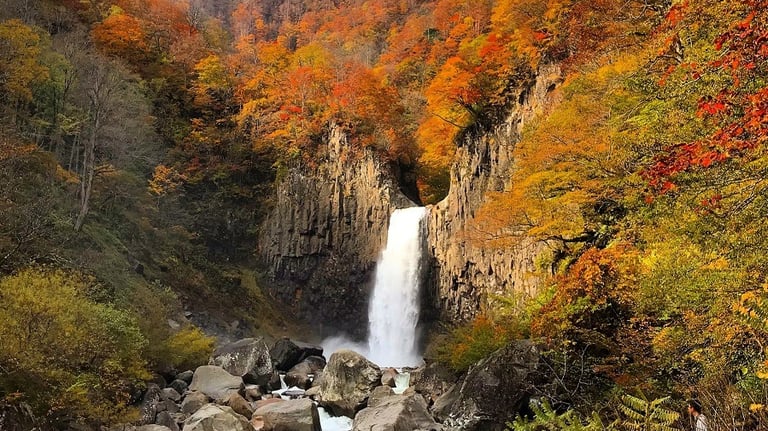 Naena Falls is a magnificent waterfall located in Tokamachi City, Niigata Prefecture, Japan, and is known as one of the "Three Great Waterfalls of Japan." It is a popular spot that attracts many tourists due to its power and beautiful scenery. It is especially beautiful during the seasons of fresh greenery in spring and autumn leaves, making it an attractive place for photography enthusiasts and nature lovers.
