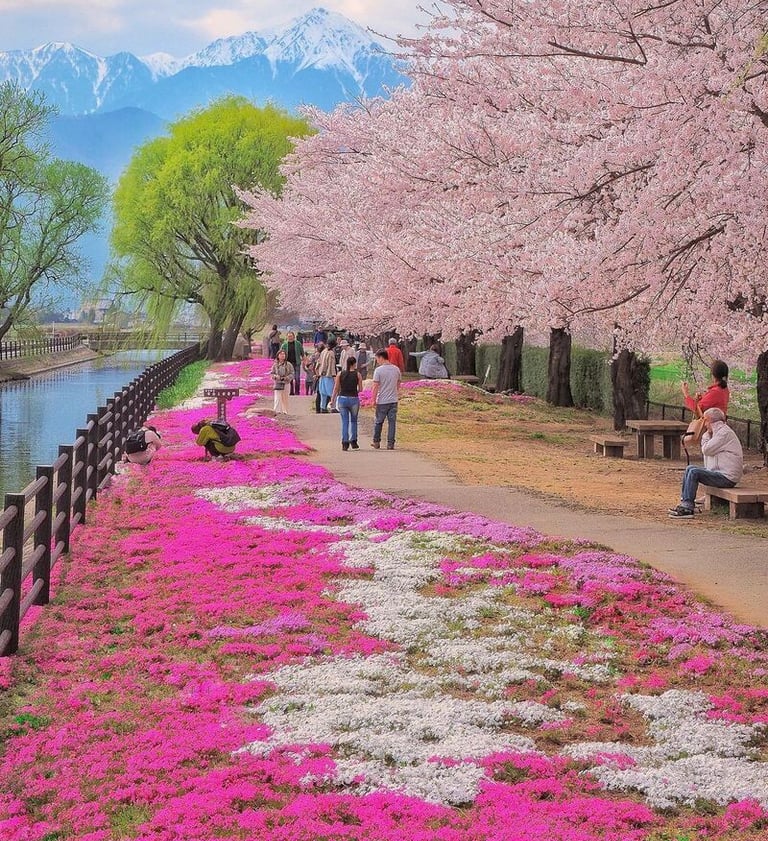 As the harsh cold of winter comes to an end, the snow melts and new greenery appears, and cherry blossoms bloom. This is also the time when rice planting begins, creating beautiful rural landscapes.