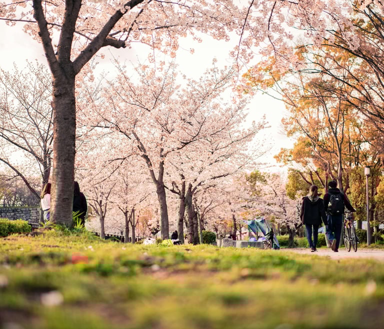 Cherry blossoms, a symbol of spring, can be seen throughout Japan. Particularly famous spots such as Ueno Park in Tokyo and the Philosopher's Path in Kyoto. Hanami" under the cherry blossoms is a traditional Japanese cultural experience.