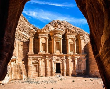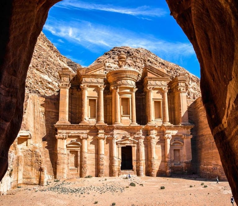 Petra, a symbol of Jordan and a city that attracts tourists from all over the world, is a mysterious city carved directly into red sandstone by the ancient Nabataean people in the 3rd century BC. The moment you pass through the narrow Siq Canyon at the entrance, you will see the figure of Tre Asury (Al-Khazne), where red sandstone stops the flow of time in the middle of the desert. This view explains why it was selected as one of the "New Seven Wonders of the World" in 2007.