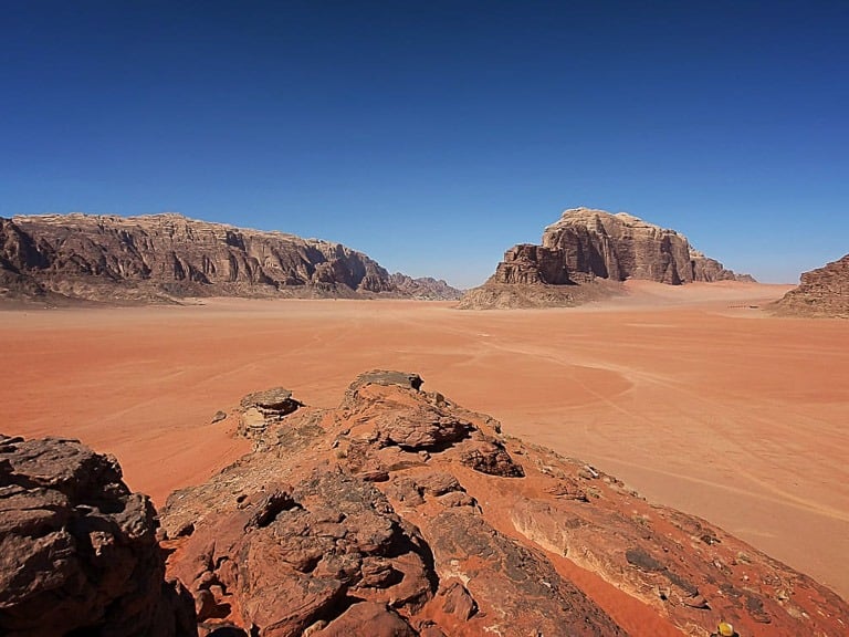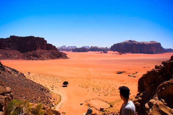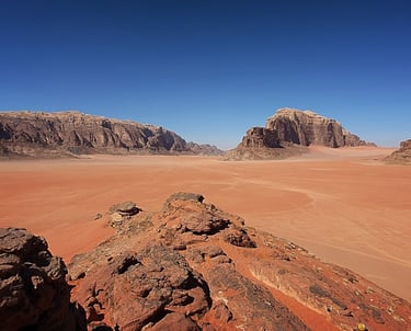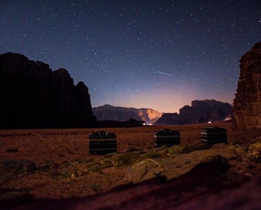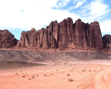 Wadi Rum, also known as the Valley of the Moon, is one of the most spectacular desert landscapes on earth. Located about 60 km northeast of the Red Sea and the city of Aqaba, Wadi Rum's beautiful nature attracts tourists from all over the world for jeep safaris, two-day Bedouin hospitality experiences, hiking, rock climbing, ATVs, and hot air ballooning. Wadi Rum remains an open desert with few buildings, and its inhabitants are the Bedouin tribes that have lived here throughout history, up to the present day.