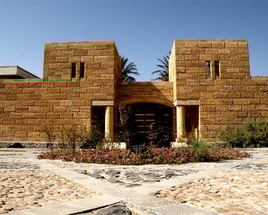 The city's scenery is unique, with the colors of the red sandstone and mosaics harmonizing, and the coexistence of traditional Middle Eastern stone houses and ancient art.