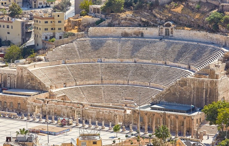 Amman's historical center, Al-Ksour, is dotted with ancient Greek and Roman ruins. In particular, Amman Serif (Fortress) and the Roman Theater tell the tale of human traces that continue from 1,200 BC, and you can experience the grandeur of ancient times with a spectacular view.