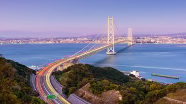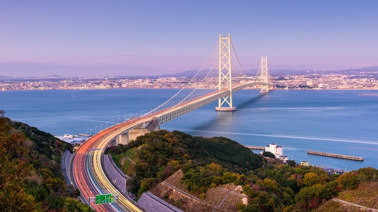 The Akashi Kaikyo Bridge took about 10 years to complete and is the longest suspension bridge in the world, connecting Kobe City in Hyogo Prefecture and Awaji Island, and is a symbolic structure that brings together the best of Japanese civil engineering technology. With an overwhelming scale of about 3,911 meters in length and beautiful design, it is known as the "world's best suspension bridge" and is a popular spot visited by many tourists from both Japan and abroad.
