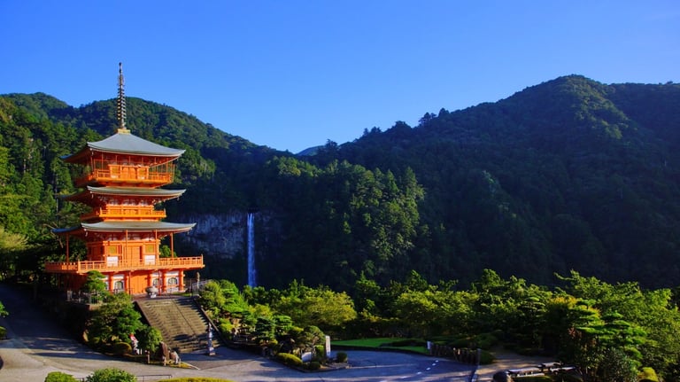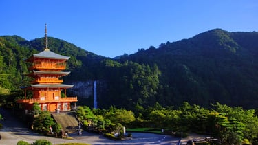 Nachi Falls, located in Nachikatsuura Town, Higashimuro District, Wakayama Prefecture, is one of Japan's most famous waterfalls, and is a special place where its magnificent scenery and deep religious culture come together. It has been chosen as one of Japan's 100 Best Waterfalls, with the highest drop of 133 meters, and has been revered as the center of Kumano faith since ancient times. It was registered as a UNESCO World Heritage Site in 2004 as part of the "Sacred Sites and Pilgrimage Routes in the Kii Mountain Range."