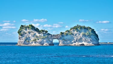 Engetsuto is a small uninhabited island in Shirahama Town, Nishimuro District, Wakayama Prefecture, and has been selected as one of the "100 Best Sunsets in Japan" due to its beautiful scenery. Its official name is "Takashima", but it is affectionately known as "Engetsuto". There is a large arch-shaped hole in the center of the island, and when the setting sun shines through it, it looks like a full moon, hence the name. It is known as one of the most scenic spots in Japan, and is a popular destination visited by many tourists.