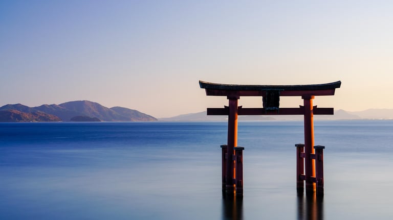 Shirahige Shrine is an ancient shrine located in Takashima City, Shiga Prefecture. It is a beautiful shrine also known as the "Itsukushima of Omi."Its symbol is the vermilion-lacquered Otorii (Grand Gate) floating on Biwa Lake , and its scenery attracts many tourists from Japan and abroad. It is also regarded as the head shrine of “Shirahage shrines” throughout Japan, and is believed to be beneficial for longevity, matchmaking, and good fortune since ancient times.