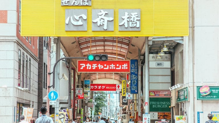 Shinsaibashi is a famous downtown area located in Chuo-ward, Osaka City, and is visited by many people from Japan and abroad as a tourist destination. It is especially known as an area for shopping and dining, and is the center of the Minami district, also known as "Osaka's kitchen. The name “Shinsaibashi” comes from “Shinsaibashi Bridge” built in the early Edo period. This bridge symbolized the culture of the townspeople of that time, and vestiges of this culture can still be seen today.