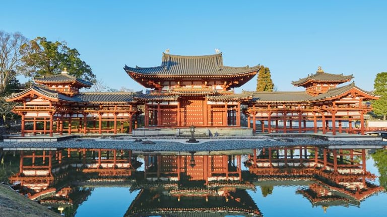 Byodoin Temple is a historic temple located in Uji, Kyoto Prefecture, and is registered as a UNESCO World Heritage Site. Founded in 1052 during the Heian period, it is one of Japan's leading Buddhist cultural assets. It is particularly famous for its beautiful building called the "Phoenix Hall," which is depicted on Japan's 10 yen coin and old 10,000 yen notes. The temple also boasts magnificent gardens and Buddhist statues, making it a popular spot for tourists from both within Japan and overseas.
