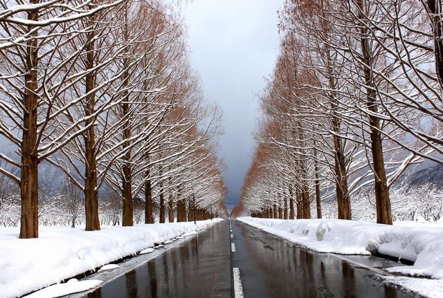 Walking along the silent old roads in the snowy scenery is a spiritually cleansing experience.