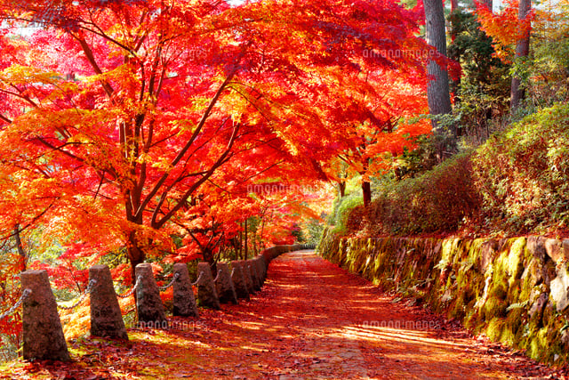 Not only is it a place for cherry blossoms in spring, but also for autumn leaves. The entire mountain is dyed fiery red and yellow.