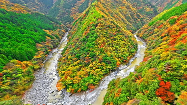 Hinoji Valley is a beautiful valley located in Miyoshi City, Tokushima Prefecture, Shikoku, deeper into the Iya region. Its name comes from the fact that the valley's topography is curved like the character "hi". Characterized by its natural scenery and tranquil atmosphere, it is a place where you can enjoy the charm of a hidden place. Even within Iya, which is known as a hidden place, this is an area where even more untouched nature remains.