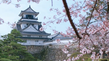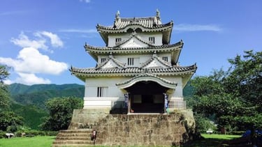 Ozu Castle is a historic castle located in Ozu City, Ehime Prefecture, Japan, and is a symbol of Ozu City, known as the "Little Kyoto of Iyo." The castle is located along the beautiful Hijikawa River, and is characterized by its scenery that blends in with the surrounding nature. The castle tower was restored in 2004 using wood, and has attracted attention for its beauty and high level of craftsmanship. The existing "Inuimon" gate and "Watari-yagura" tower are designated as Important Cultural Properties of Japan. The castle is also known as a place where you can enjoy valuable historical heritage such as the restored castle tower and existing towers.