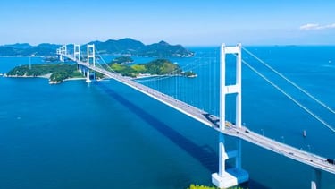 The Shimanami Kaido is a 70-km long road connecting Onomichi City, Hiroshima Prefecture, and Imabari City, Ehime Prefecture, Japan. It is the first tourist route in Japan to be built on a full-scale "bicycle path. Opened in 1999, it was designed not only for automobiles, but also for bicycles and pedestrians. By connecting islands in the Seto Inland Sea National Park, the road aimed to revitalize the region and promote tourism. It is a spectacular route that connects the beautiful islands of the Seto Inland Sea, and is a place that can be enjoyed in various ways throughout the four seasons. here are trips that suit your purpose, such as cycling, driving, and experiencing the cuisine and culture of each island.