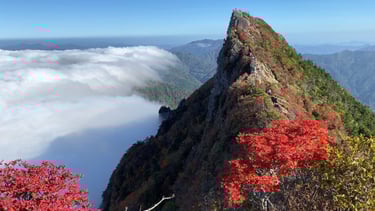 Mount Tsurugi is a 1,955m high mountain located on the border between Tokushima and Kochi prefectures in Shikoku, and is the second highest mountain in Shikoku after Mount Ishizuchi. It is also known as one of the 100 famous mountains in Japan, and is popular with mountaineers and nature lovers. In addition, there are a series of steep rocky peaks near the summit, and the impressive scenery earned it the name "Mount Tsurugi."