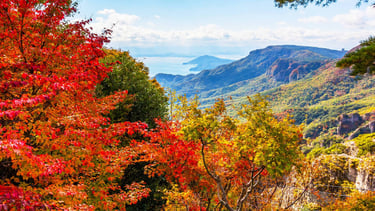 In autumn, the leaves turn red all over Shikoku, and since it's harvest season, you can also enjoy gourmet food made with local ingredients.