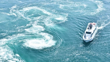 The Naruto whirlpools are a natural phenomenon that can be seen in the Naruto Straits, which separate Shikoku and Awaji Island, and are characterized by “whirlpools” that are among the largest in the world. The currents of seawater flow quickly through the narrow straits, and the collision of these currents creates a huge whirlpool. The largest whirlpools can be seen at low and high tide. The maximum diameter of the whirlpool is about 20 meters, and its power is breathtaking.