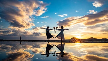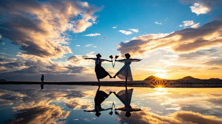 One spot that is rapidly gaining popularity in Kagawa is Chabogahama Beach, which boasts a 1-km long beach! At low tide, the surface of the water reflects like a mirror, creating a fantastic photo opportunity. Its photogenic appearance is like the Salar de Uyuni in Bolivia. The beautiful sight at dusk is truly a sight worthy of the word “spectacular,” and has been selected as one of the "100 best sunsets in Japan.