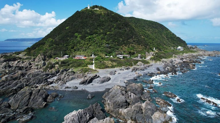Ashizurisaki is a cape located in the southwestern part of Kochi Prefecture, jutting out into the Pacific Ocean, and is a scenic spot rich in nature. It is characterized by its spectacular scenery and dynamic topography, and has been selected as one of the “50 Best Lighthouses” and "100 Best White Sand and Green Pines in Japan. Furthermore, the area was recognized as a UNESCO World Geopark in 2018, making it a geologically valuable place.