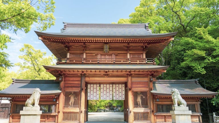 Oyamazumi Shrine is a historic and prestigious shrine located on Omishima Island in Imabari City, Ehime Prefecture, Japan, and is an important shrine also known as the "General Guardian of Japan." The shrine enshrines the god who protects the mountains and islands, and has long been a place of worship for samurai and sailors. It also has a treasure museum designated as an Important Cultural Property of Japan, where many historical weapons and documents are on display. It is said to have been founded about 2,600 years ago, and has existed for so long that it is mentioned in the Nihon Shoki. It has long been known as the "God of Warriors," and has attracted the devout faith of samurai.