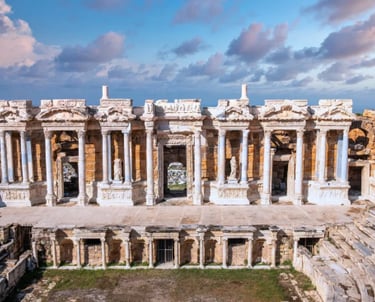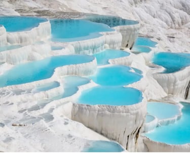 The highlight of the tour is the experience of walking through the warm, clear hot springs (currently some access is restricted for protection). In addition, from the Pamukalle Theater on the hill above the city, you can see the theater, which retains the appearance of ancient Rome, and the surrounding white terraced fields, and enjoy the harmony of history and nature at the same time.