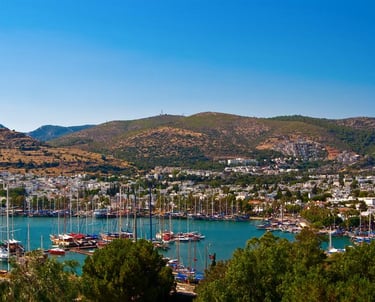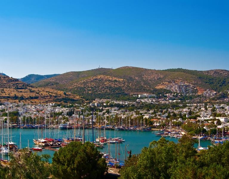 Bodrum is a fascinating port city located on a peninsula jutting out into the Aegean Sea in southwestern Turkey, where history and modern resorts blend together. It inherits the legacy of the ancient Greek city of Halicarnassus and is known for its stunning views of white houses and blue seas, making it a popular resort destination known by Westerners as a "Mediterranean paradise."