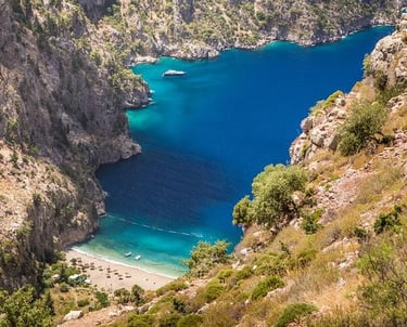 The Dead Sea, with its crystal clear waters and white sandy beaches, is famous for its natural beauty. Paragliding offers spectacular views over the sea, cruises in the caves and islands of Feteshieh Bay, and the secluded Butterfly Valley (Kelebek Dagi) offers picturesque scenery.