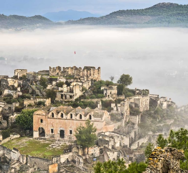 The city's historical sites of note include the Tomb of Amyntas, a rock tomb built by the ancient Lycians, and the ruined Christian town of Kayakoi (Onijo), where the stone houses weathered over time after people left in the ethnic exodus of the 1920s. This is a spot where you can experience the "authentic stage of history. From the fortress of Feteshie (ancient Thermesos), the view of the blue sea and the white houses is breathtaking, and the ancient aspect of the city can be seen today.
