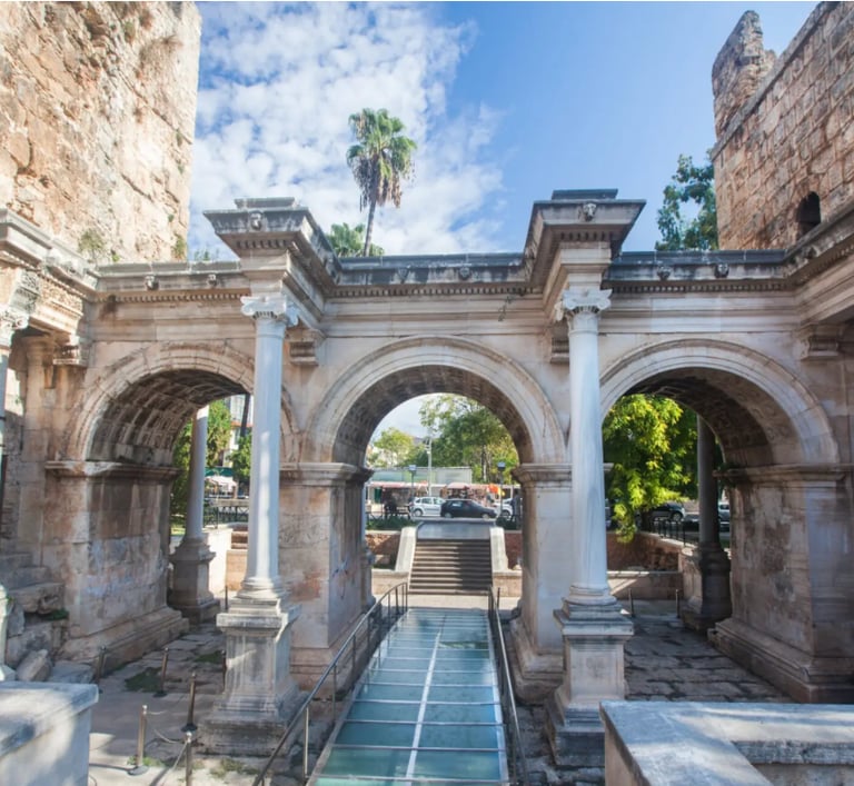 The city's iconic spot, Kaleici (Old Town), is characterized by a historic streetscape of stone buildings and narrow alleys, and you can enjoy a contrasting atmosphere with the blue sea of the Mediterranean. In addition, there are many famous places where you can feel the breath of history, such as Hadrian's Gate, Duden Waterfall, and the ancient cities of Aspendos and Perge in the vicinity.